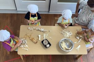 - 食育「れんこん」 みんなでれんこんの穴をのぞいたよ!